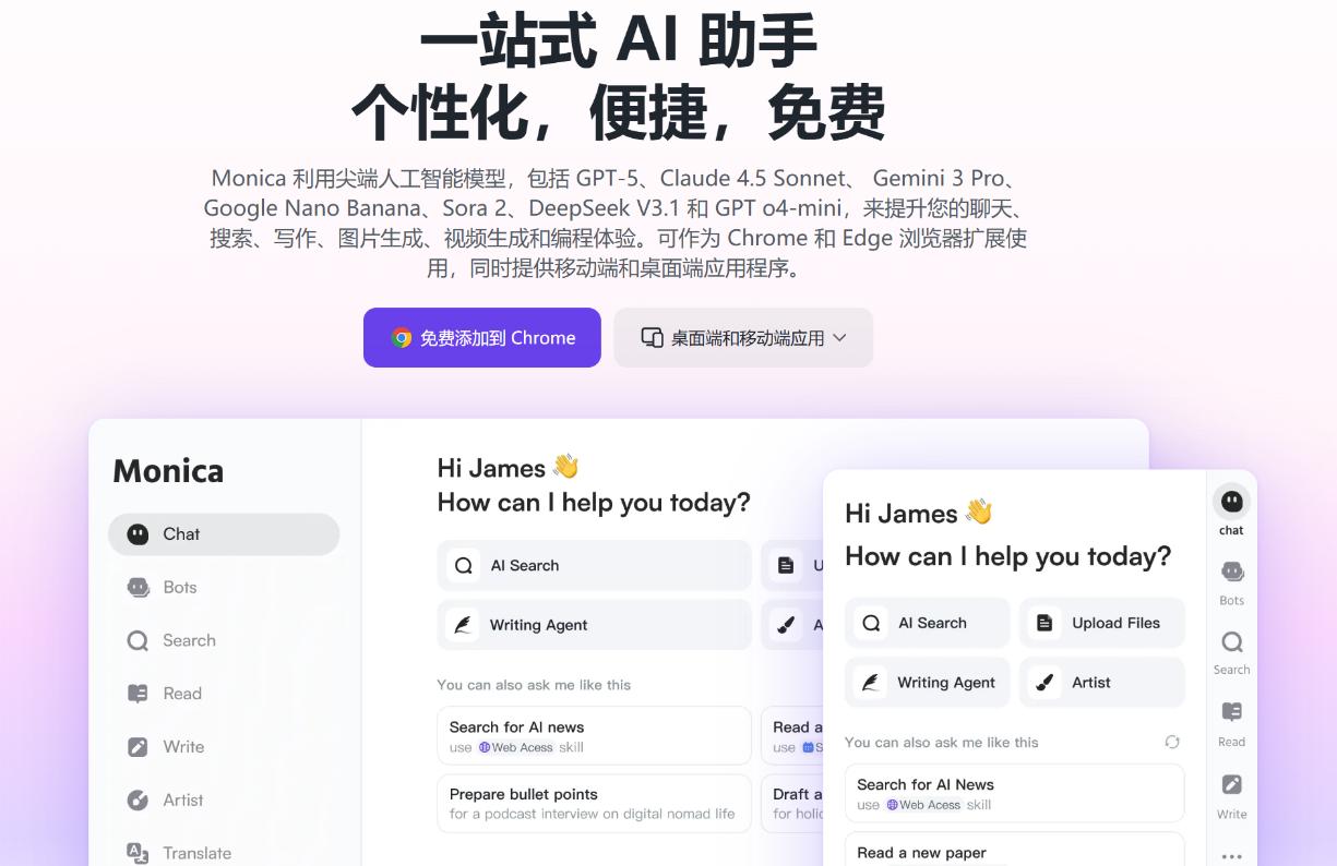 - 🛠 学生/科研:读论文先让 Monica 生成 3 段摘要,再就细节追问,比翻页快 5 倍