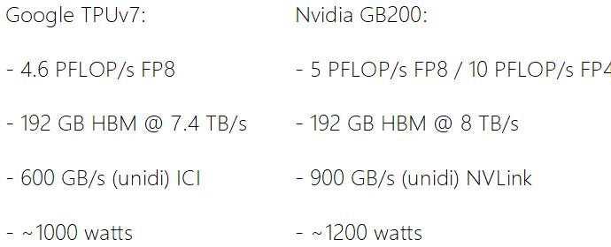 附:Google TPUv7 vs Nvidia GB200 性能对比