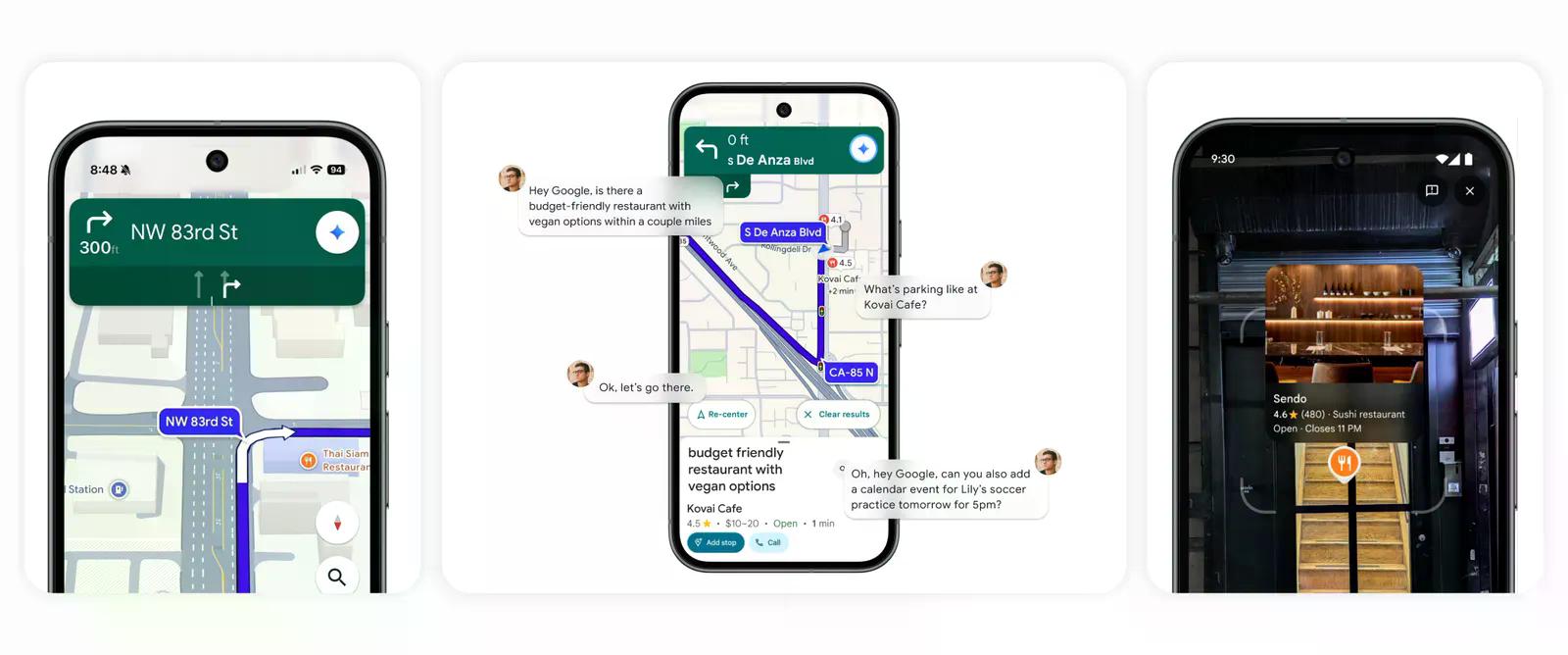 导读: Google宣布,旗下导航应用Google Maps正式接入Gemini智能助手。用户可以使用语音完成找餐馆、查充电桩、报路况等任务,甚至能直接让Gemini加日程、播报新闻。