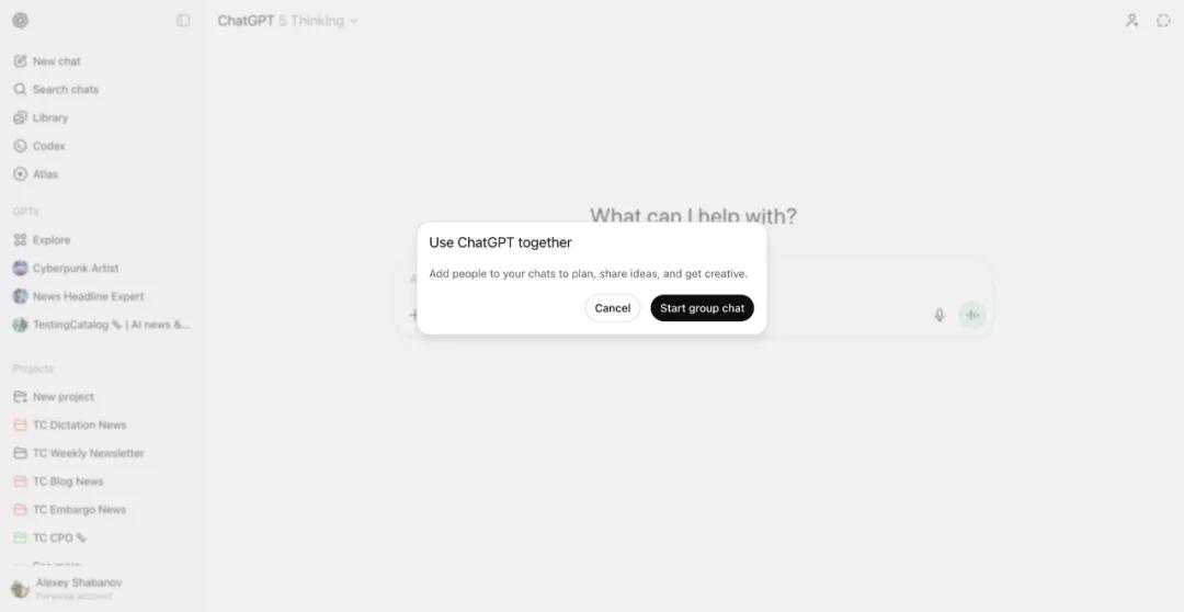 OpenAI正在测试一项名为“群聊(Group Chats)”的新功能,计划让多个用户能在同一会话中共同交流,并与ChatGPT协作。