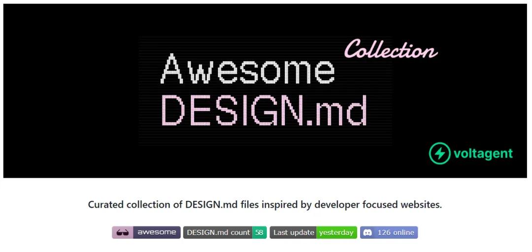 VoltAgent团队分析了31个顶级科技公司的网站,把它们的“设计语言”提取成了DESIGN.md文件。