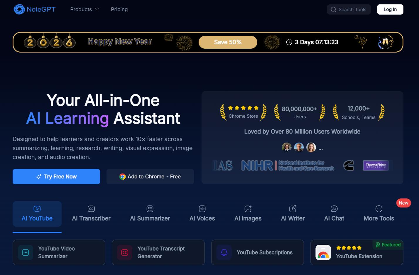 ✨ 一站式「AI 学习外挂」:YouTube、PDF、音频、网页秒级转录 + 摘要 + 思维导图 + 闪卡,100+ 语言支持,15 配额内免费玩,学生刷课、科研扫论文、自媒体做字幕都能 10 倍速搞定。