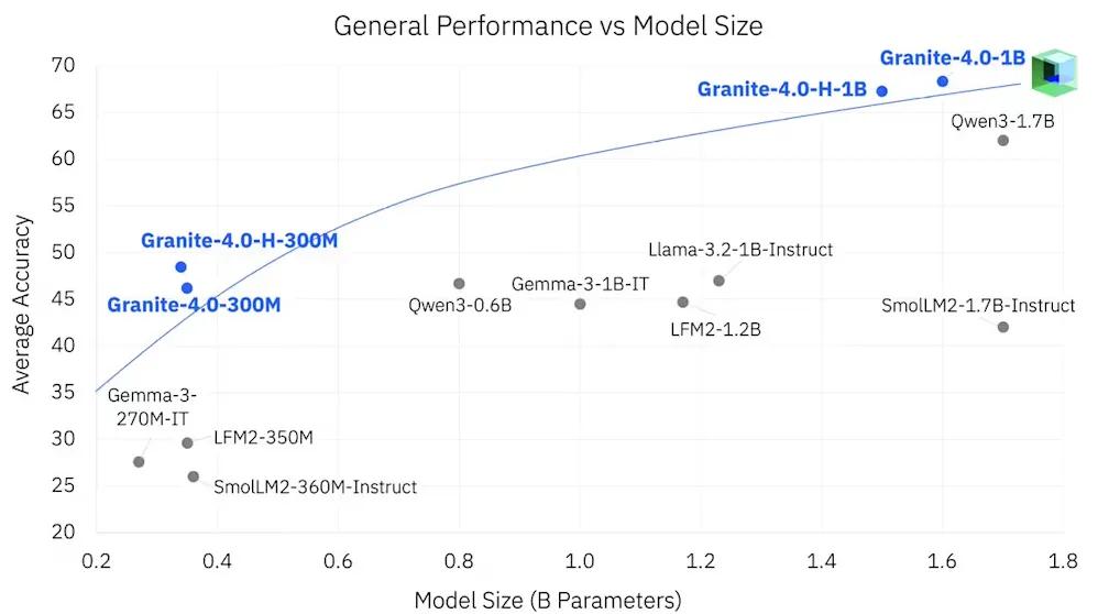 | Granite-4.0-H-1B | 约15亿 | Hybrid-SSM | 平衡性能与延迟表现,专为边缘设备优化,在指令跟随与函数调用任务中表现突出。 |