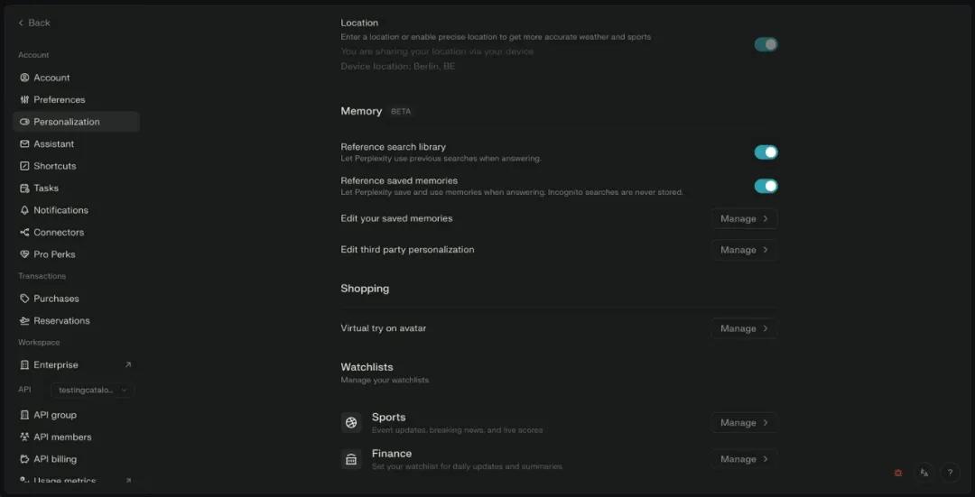 Perplexity 最近正在测试一组围绕“个性化”和“隐私控制”的新功能。