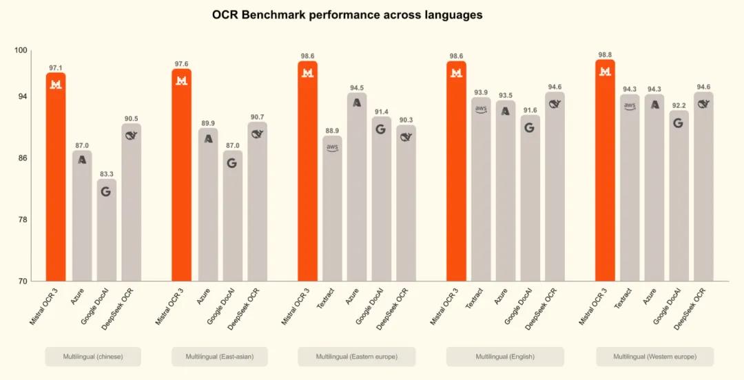 导读:Mistral AI 正式发布 OCR 3,在官方测试中,整体胜率达到 74%,明显领先上一代和多数同类方案。支持手写内容识别,还能还原表格和文档结构,同时,速度和价格也被压到行业新低。