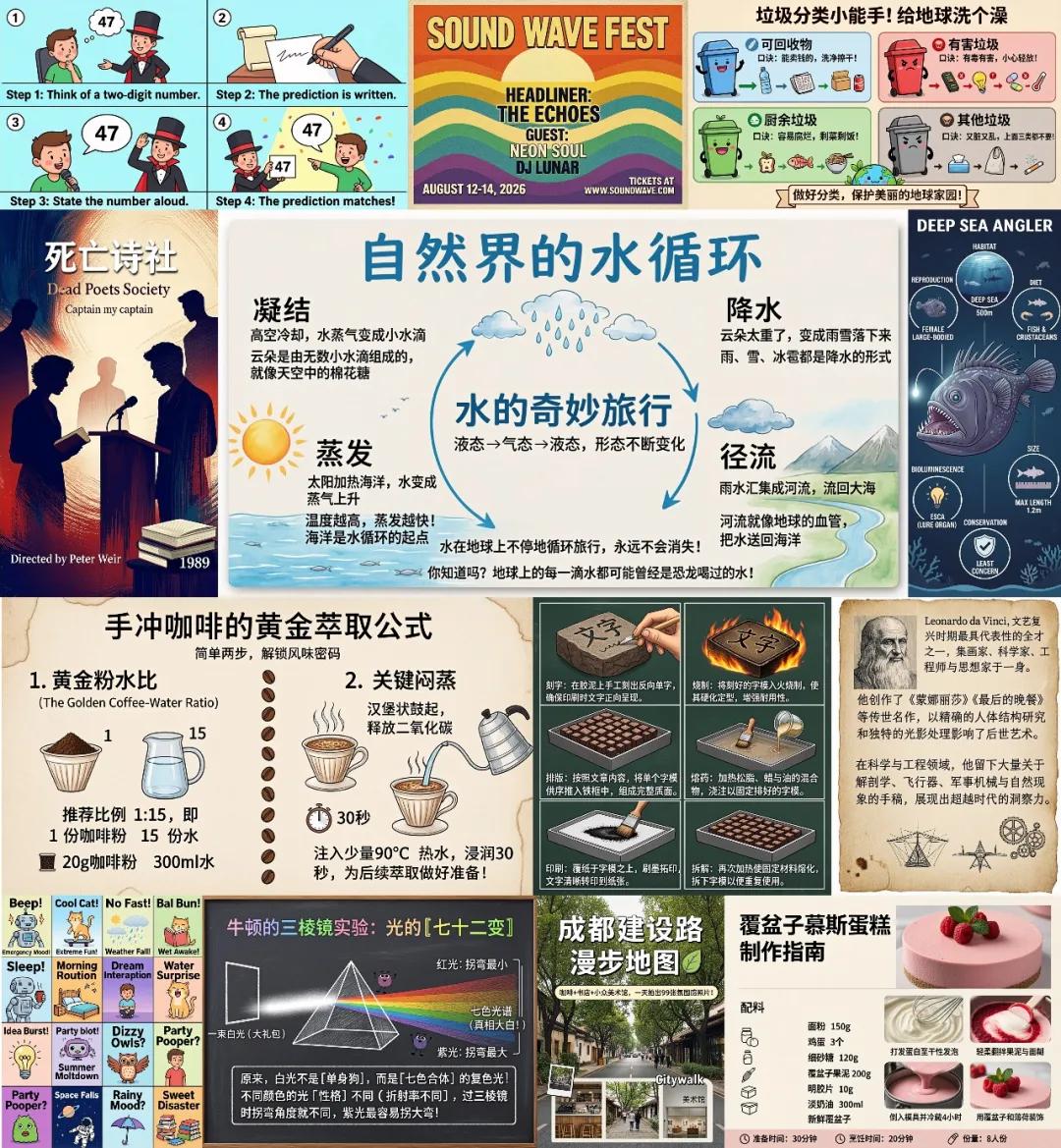 GLM-Image是唯一在该测试中超越闭源模型Seedream 4.5(0.899)的开源模型。在LongText-Bench长文本理解测试中,中文场景达0.9788,英文场景达0.9524,充分证明其处理复杂长文本提示的能力。