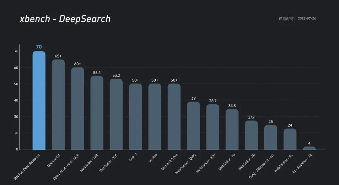 - 红杉中国 xBench-DeepSearch(中文复杂检索)通过率约 70%,位居榜首