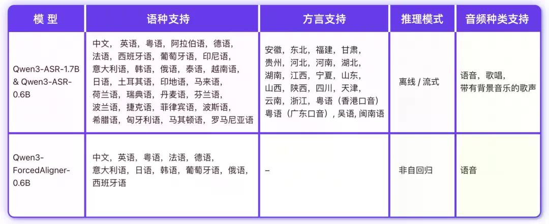 此次开源的Qwen3-ForcedAligner-0.6B是一个基于NAR LLM推理的时间戳预测模型,支持11个语种在5分钟以内语音的任意单元精准对齐。