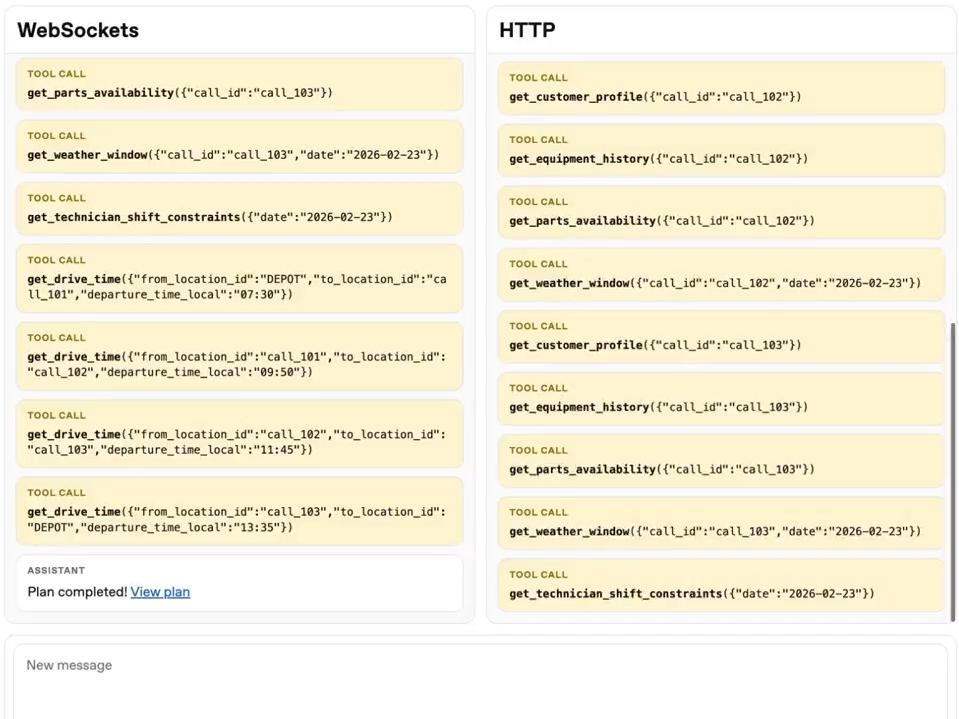 在传统 HTTP 模式下,每一次"调用工具—返回结果—继续执行"的循环都要经历完整的连接建立和上下文传递流程。而在 WebSocket 模式下,这些循环可以在同一条连接上顺畅进行,每次只传递必要的增量信息。这不仅是速度的提升,更是工作流体验的根本改善。